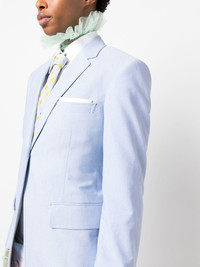 single-breasted cotton blazer light blue cotton silk lining notched lapels chest welt pocket front button fastening two front flap pockets long sleeves signature grosgrain loop tab Made in Italy Composition Outer: Silk 100%, Cotton 100% SIZE & FIT Model measurements Height 5 ft 11 in(1.8 m) Bust/Chest 31.88 in(81 cm) Hips 35.03 in(89 cm) Waist 24.01 in(61 cm)