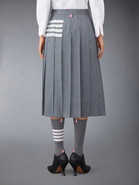 PLAIN WEAVE 4-BAR MIDI PLEATED SKIRT