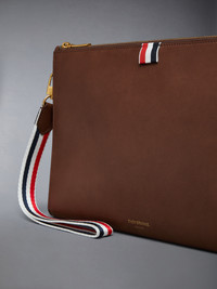 Introducing our Medium Gusset Folio, crafted from ultra-soft calf leather. Features a zip top closure for secure storage and a tricolor wristlet strap. Brass zip top closure Tricolor wrist strap Gold foil logo Signature striped grosgrain loop tab 100% Calf Full Grain Leather Lining: 100% Polyester Made in Italy MAC083A-L0117-205