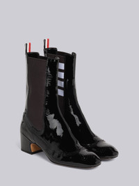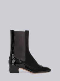 Soft Patent Leather Mid Calf 4-Bar Heeled Chelsea Boot