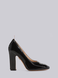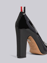 DETAILS & FIT Block heel court shoe in soft black patent leather with broguing details throughout. Round toe. 105mm patent-covered heel with black rubber cap. Leather sole. Striped lining. Signature striped grosgrain loop tab at heels. Made in Italy Upper:100% Calf Patent Leather Sole:100% Calf Leather FFH255A00216001 - HEEL: 10.5cm