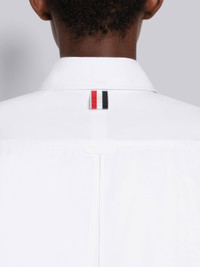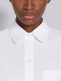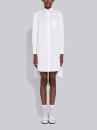 DETAILS & FIT Mini shirtdress in solid white poplin with single inverted pleat through center back. Front button clsoure, rounded point collar, patch chest pocket, name tag applique above shirttail hem. Seamed back yoke with locker loop. Signature striped grosgrain loop tab at back of neck. Model is 5'10" (178 cm), wearing size 40 Made in Italy 100% Cotton FDSD95A03113100