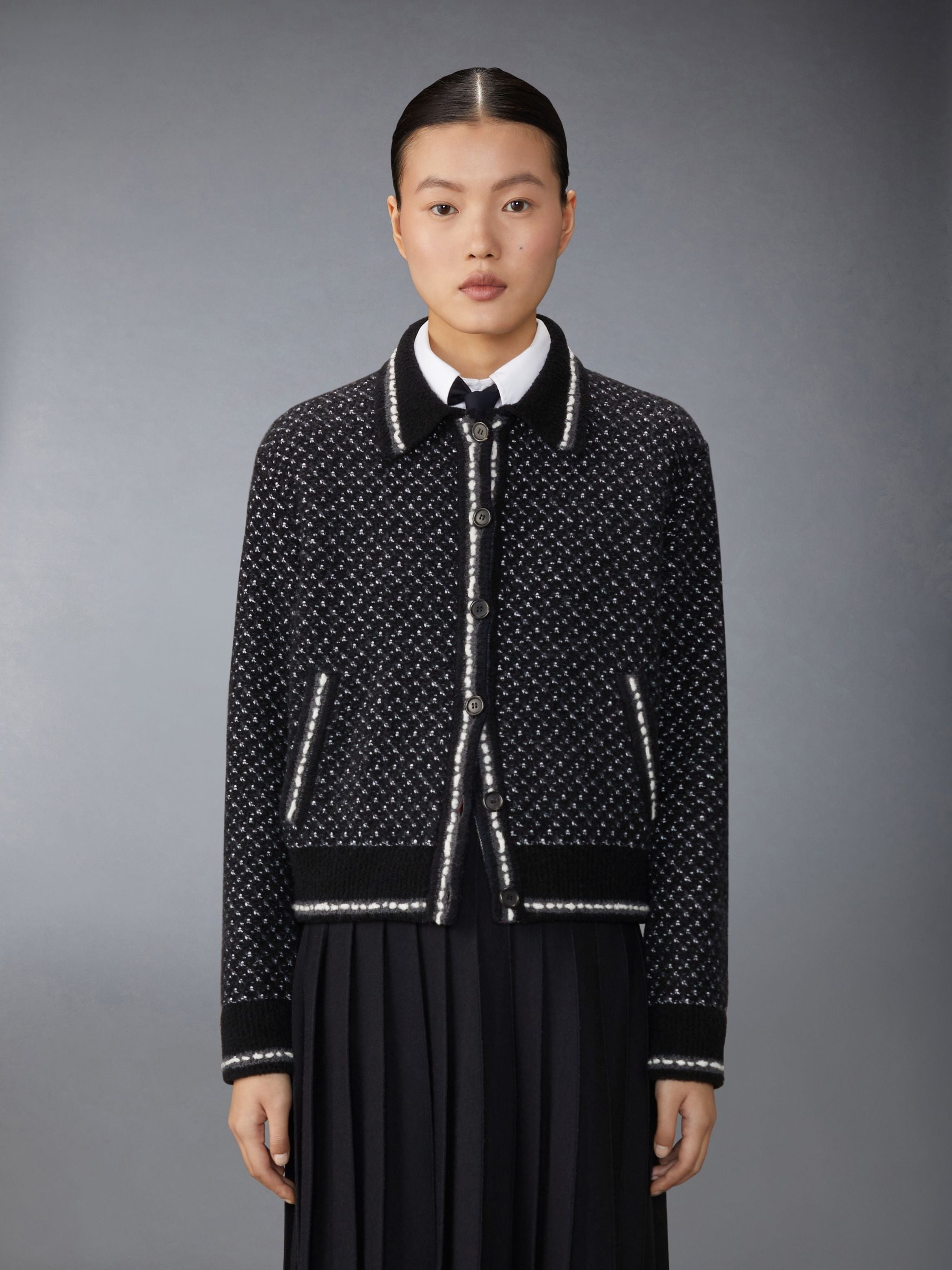 Merino Wool Boucle and Mohair Tweed Jacquard Polo Collar Bomber