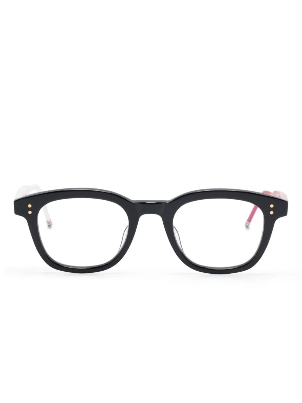 square-frame glasses Highlights - Black/white/red - Acetate - Square frame - Clear lenses - Straight arms - Rwb stripe - Curved tips - All glasses from farfetch are sold as non-prescription frames. - These glasses come with a protective case. Imported Composition Acetate 100% SIZE & FIT Measurement Arm Length 5.82 in(14.8 cm) Bridge Width 0.86 in(2.2 cm) Lens Diameter 1.88 in(4.8 cm) Total Width 5.82 in(14.8 cm)