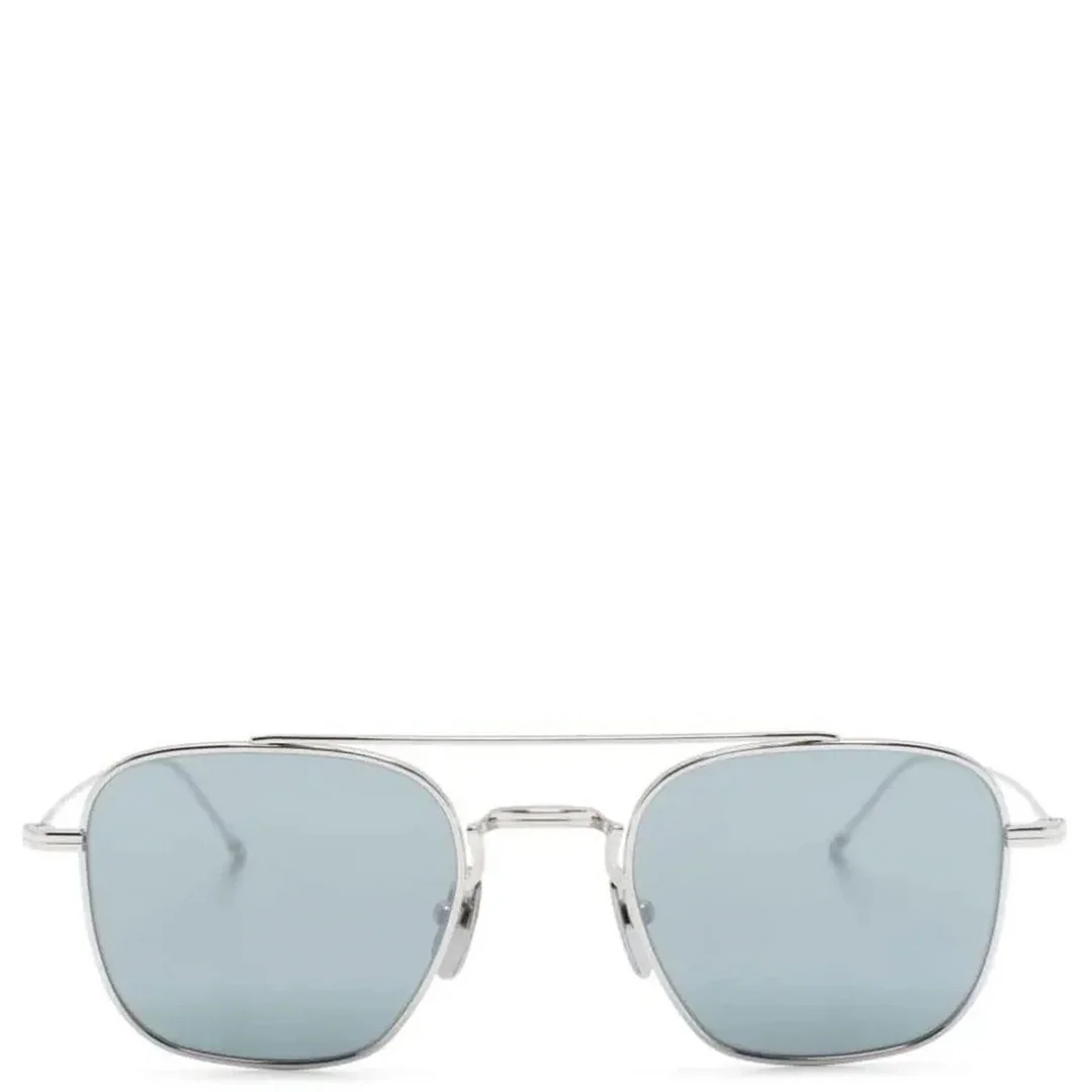 Thom Browne Squared Aviator Sunglasses Thom Browne's Squared Aviator Sunglasses showcase style with their textured matte red titanium frame and striking blue tinted lenses. Wear these sunglasses to express your individuality and be the most eye-catching person in the crowd. - 100% Titanium - Lens Width: 50 mm / Nose Bridge Length: 22 mm / Temple Length: 150 mm - Silver - Red and white titanium frames - Blue tinted lenses - White temple tips - Matte red nose bridge - Gold tone titanium nose pads - RWB stripes enamel temple tips