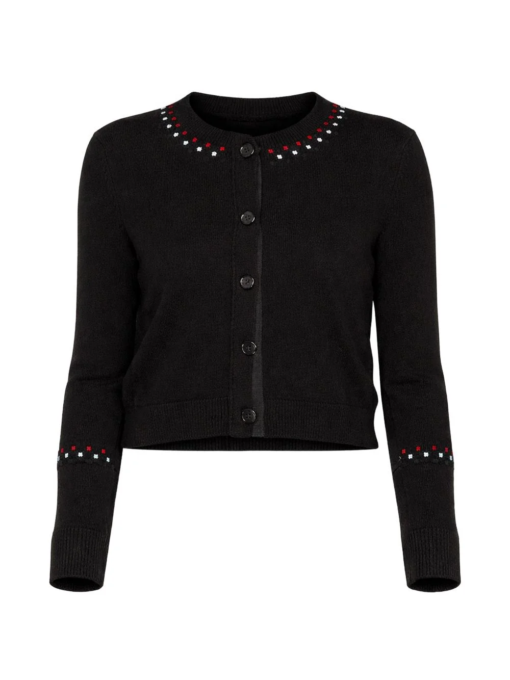 stitch-detail cropped cardigan Highlights - Black - Round neck - Button fastening - Cropped - Long sleeves - Patterned trim Imported Composition Fabric 100% Washing instructions Read Manufacturer Guidelines