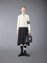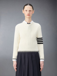 DETAILS & FIT A simple pullover that exudes sophistication. Presented in 100% virgin wool, this quality sweater will stand the test of time. Crew neckline 4-bar detailing Button side vents with signature striped grosgrain trim Signature striped grosgrain loop tab Model is 5'10" (178 cm), wearing size 40 100% Virgin Wool Made in Italy FKA465A-Y1024-100 - LENGTH: 51.0cm - WAIST: 72.0cm - SLEEVE LENGTH: 60.0cm