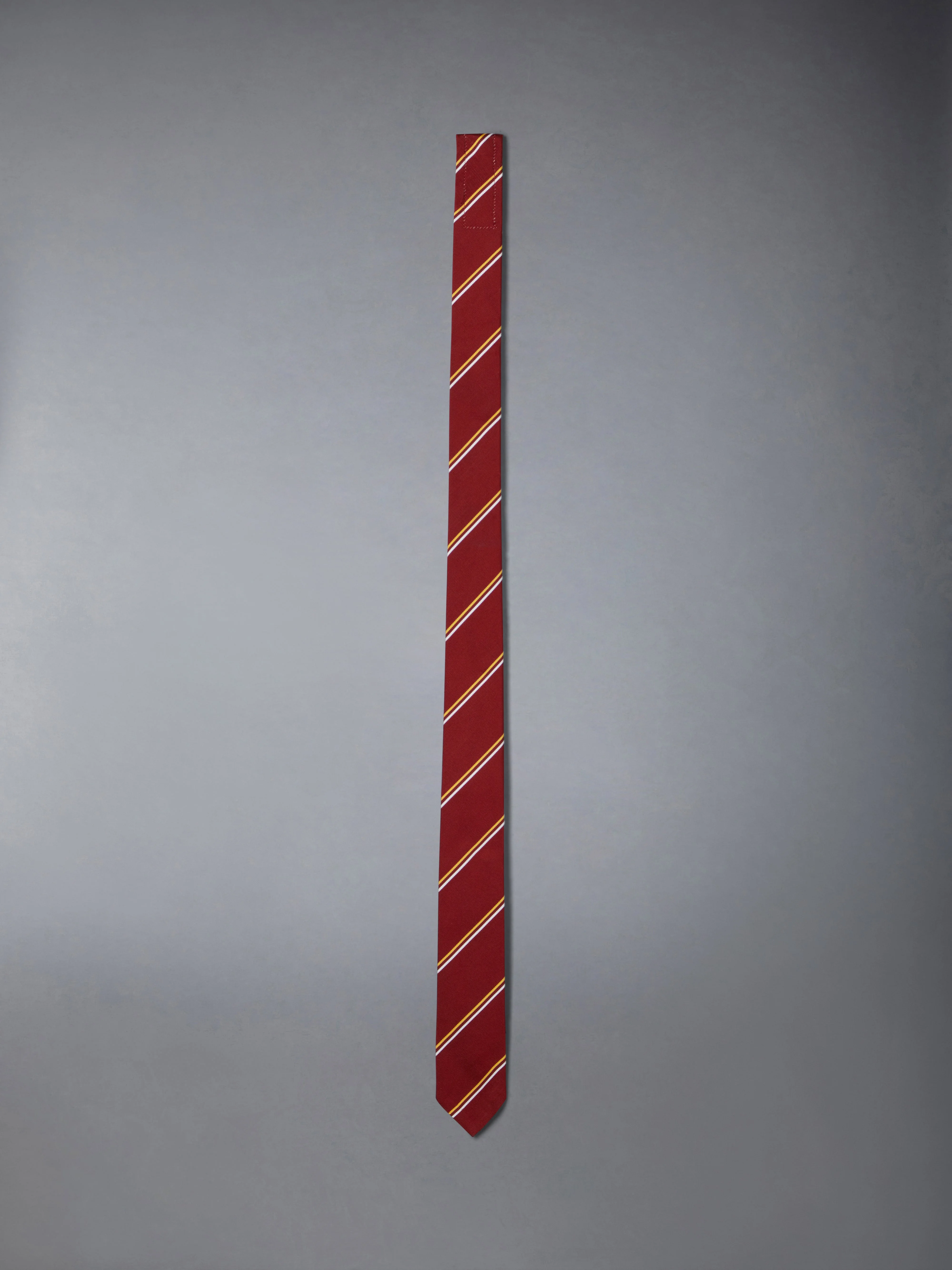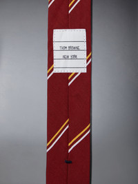 DETAILS & FIT Dress up a Thom Browne suit or button down shirt with our Classic Silk Cotton Tie. Versatile and durable, this tie can be worn all year round. Striped grosgrain trim at interior Name tag applique at interior 55% Silk, 45% Cotton Made in Italy MNL001A-F0672-615