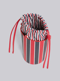 DETAILS & FIT Crossbody mini bucket bag in red stripe printed pebble grain leather with exposed drawstring stripe lining. Adjustable crossbody strap, interior slip pocket. Signature striped grosgrain loop tab at entry. 100% Calf Full Grain Leather Lining: 100% Polyester Made in Italy FAP394AL0018600