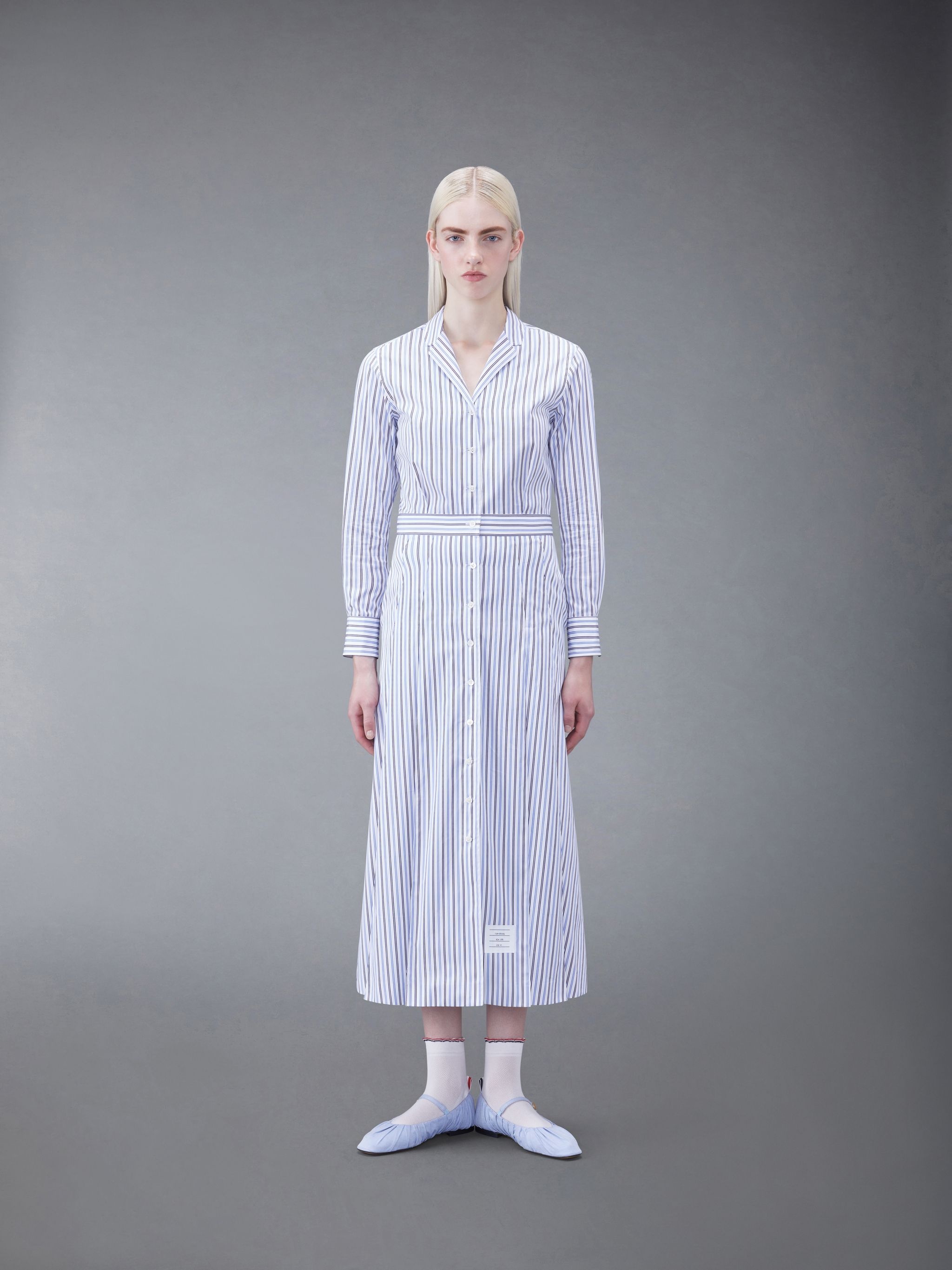 DETAILS & FIT Our Stripe Poplin A-Line Shirtdress. Crafted from the finest poplin fabric, wear this silhouette alone as an everyday staple or as a base layer for suiting. Front button closure Nametag applique Pleated back yoke with locker loop Signature striped grosgrain loop tab Model is 5'10" (178 cm), wearing size 40 100% Cotton FDSE42A-F0552-415