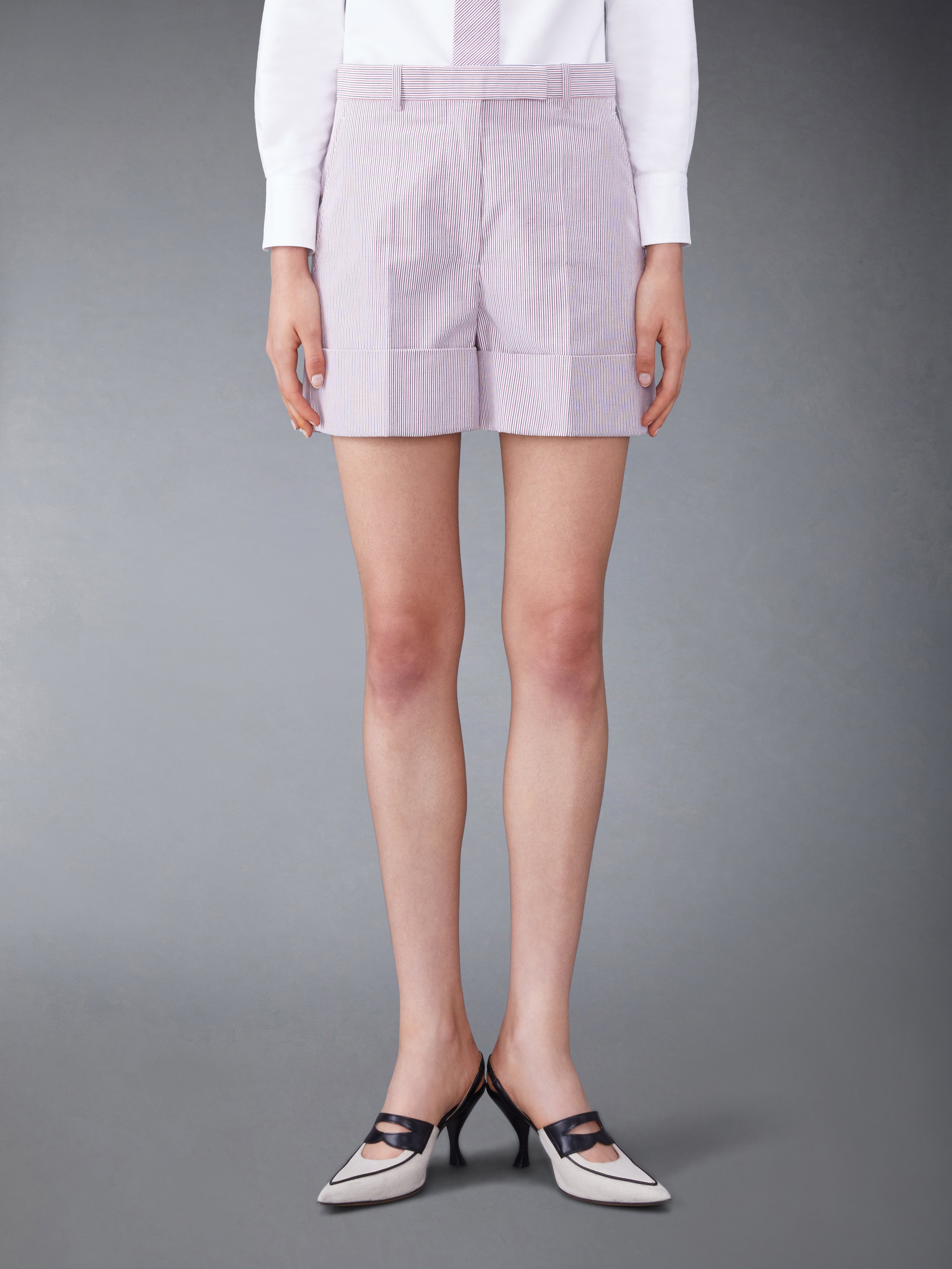 Shorts that embody the fresh spirit of spring, featuring crisp tailoring and a playful striped pattern, this limited-edition piece will serve as a staple in your polished spring wardrobe. Pair them with our Dobbycord Cropped Sack Sport Coat. Front tab closure Slip side pockets Button-fastening back welt pockets Signature striped grosgrain loop tab Model is 5'10" (178 cm), wearing size 40 100% Cotton Lining: 100% Cupro Made in Italy FTC436A-F0591-960