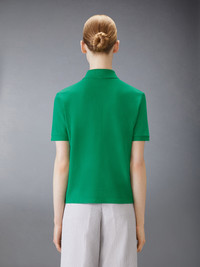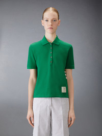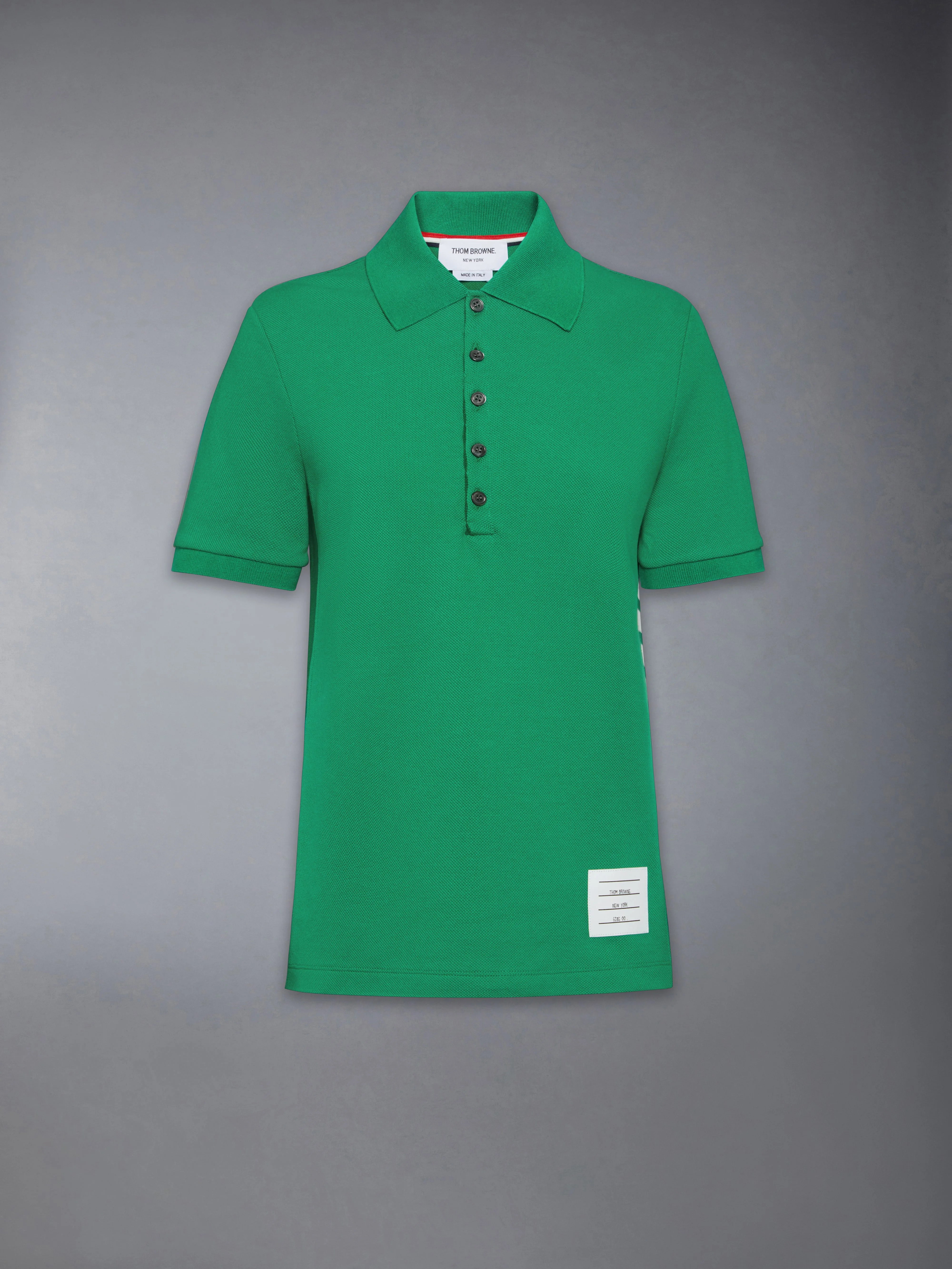 DETAILS & FIT Inspired by East Coast preppy icons, this classic pique polo is a sophisticated take on a traditional silhouette. Emblazoned with our iconic 4-bar detailing, an emblem synonymous with the brand. 4-bar detailing Partial front button placket Name tag applique Signature striped grosgrain loop tab Model is 5'10" (178 cm), wearing size 40 100% Cotton Made in Italy FJP107A-00050-330