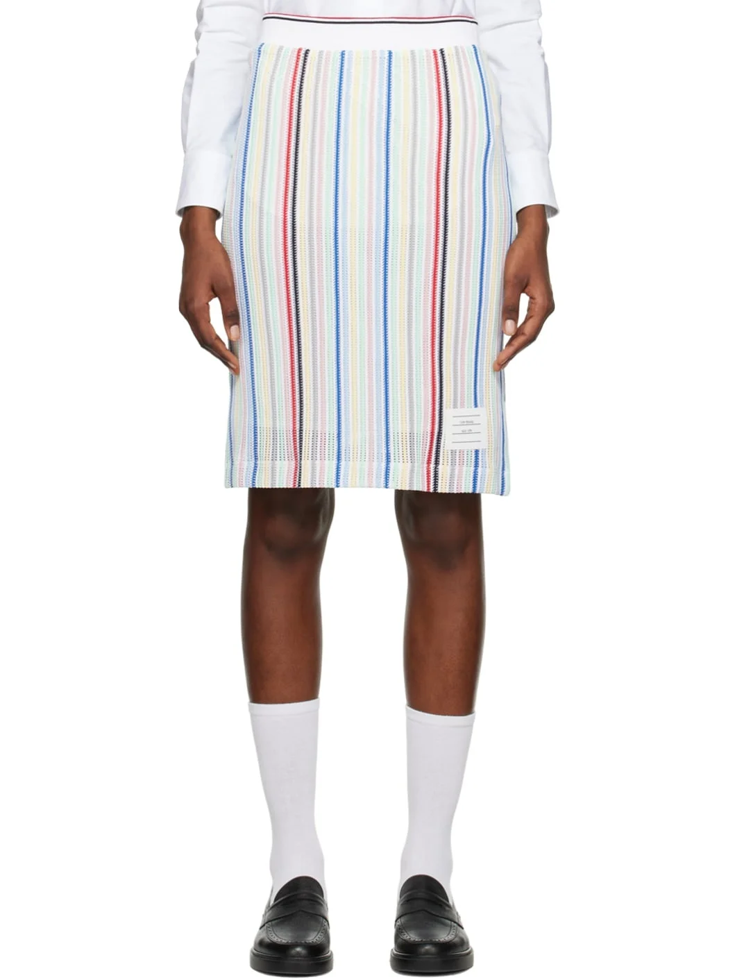 Open knit viscose-blend skirt. Stripes throughout. · Stripes at elasticized waistband · Logo patch at front hem · Tricolor grosgrain flag at back waistband · Full jersey lining Supplier color: Seasonal multicolor