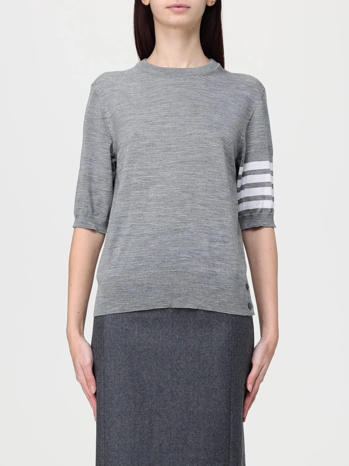 DESCRIPTION - Style: College - Details: With buttons - Model: Crewneck - Neckline: Crewneck - Shoulders: Regular - Sleeves: Short - Cuffs: Ribbed - Bottom: With side slit, With straight hemline - Logo: 4-bar Thom Browne - Materials: Wool - Pattern: Stripes DETAILS AND CARE Composition _100%WO SIZE AND FIT Sizes not available Size and fit Slim fit Designer code: FKA471BY1014 055 Giglio Code: H11373 Designer: Thom Browne Collection: Thom Browne Woman Category: Clothing Thom Browne
