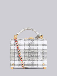 DETAILS & FIT Micro attaché case in tartan check tweed with removable woven brass chain and grosgrain ribbon shoulder strap. Locking brass clasp, tweed-covered top handle, striped leather luggage tag. Brass riveted and footed details. Striped lining with interior pocket. Brass hardware. 27% Polyester, 27% Cotton, 22% Wool, 21% Acrylic, 3% Polyamide Combo1:100% Calf Patent Leather Lining:100% Polyester Lining2:100% Lamb Leather Made in Italy FAP191A07492035 - DEPTH: 6.0cm - HANDLE: 10.0cm - HEIGHT: 15.0cm - STRAP: 53.0cm - WIDTH: 18.0cm