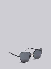 DETAILS & FIT Black iron frame cat eye sunglasses with grey tinted lenses and ridged temples. Signature striped temple tips. 100% UVA/UVB protection. Anti-reflective coating. Lens width: 60mm; temple length: 16mm; nose bridge length: 140mm. / 100% Metal Made in Japan TBS121-A-03 - Arm Length: 14.0cm - Bridge Width: 1.5cm - Lens Diameter: 6.0cm - Total Width: 14.0cm