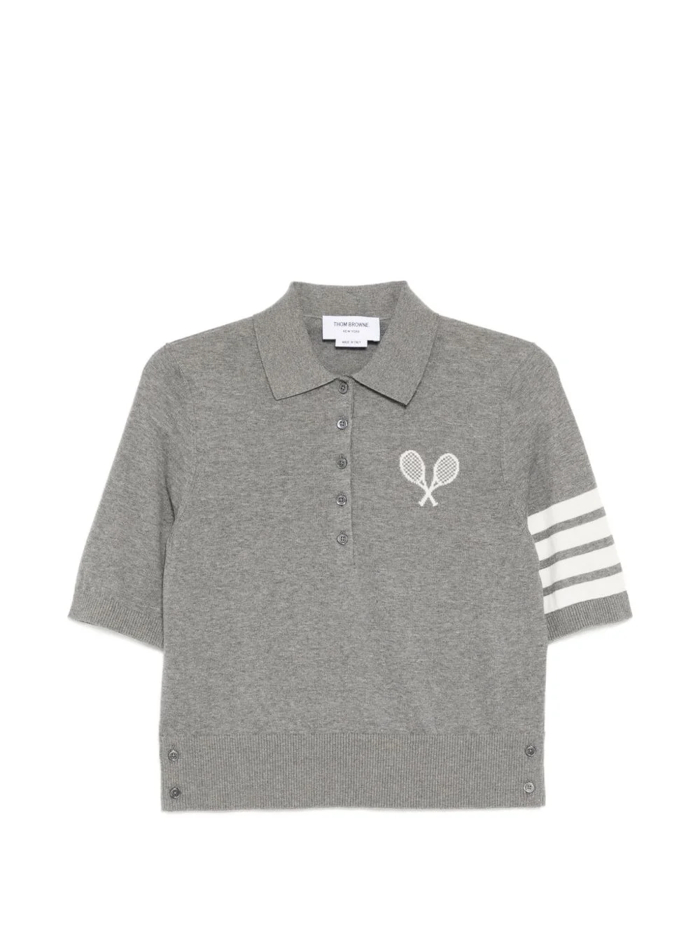 tennis-intarsia polo shirt Highlights - Stone grey - Button fastening - Ribbed hem - Short sleeves Made in Italy Composition Cotton 100% Washing instructions Dry Clean Only
