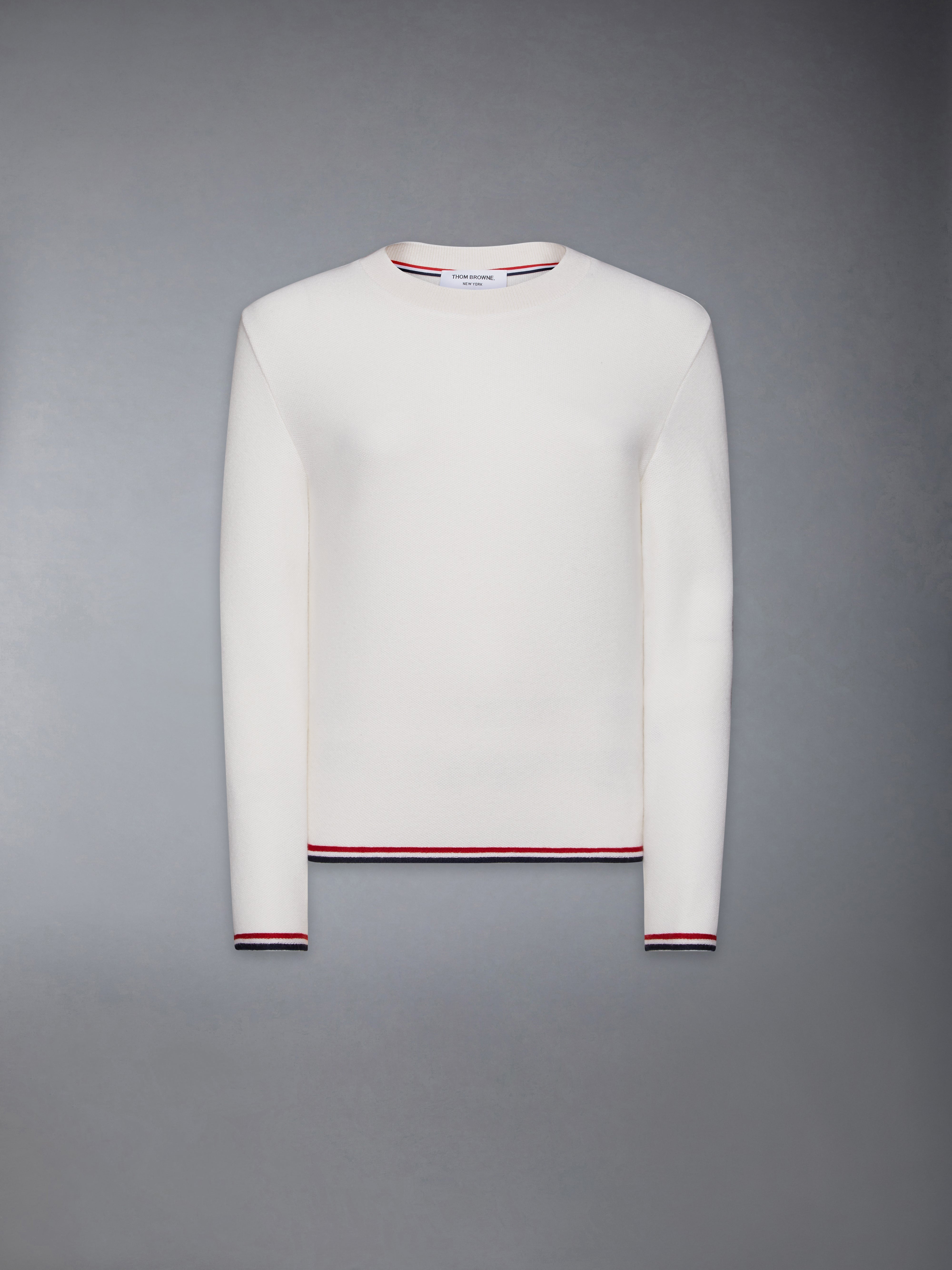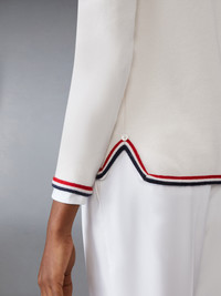 A seasonal essential, our Cashmere Long Sleeve Top exhibits quality craftsmanship and meticulous tailoring. Find a delicate line of our iconic tricolor trim at the hem. Signature striped grosgrain loop tab Model is 5'10" (178 cm), wearing size 40 100% Cashmere Made in Italy FJS180A-J0169-100