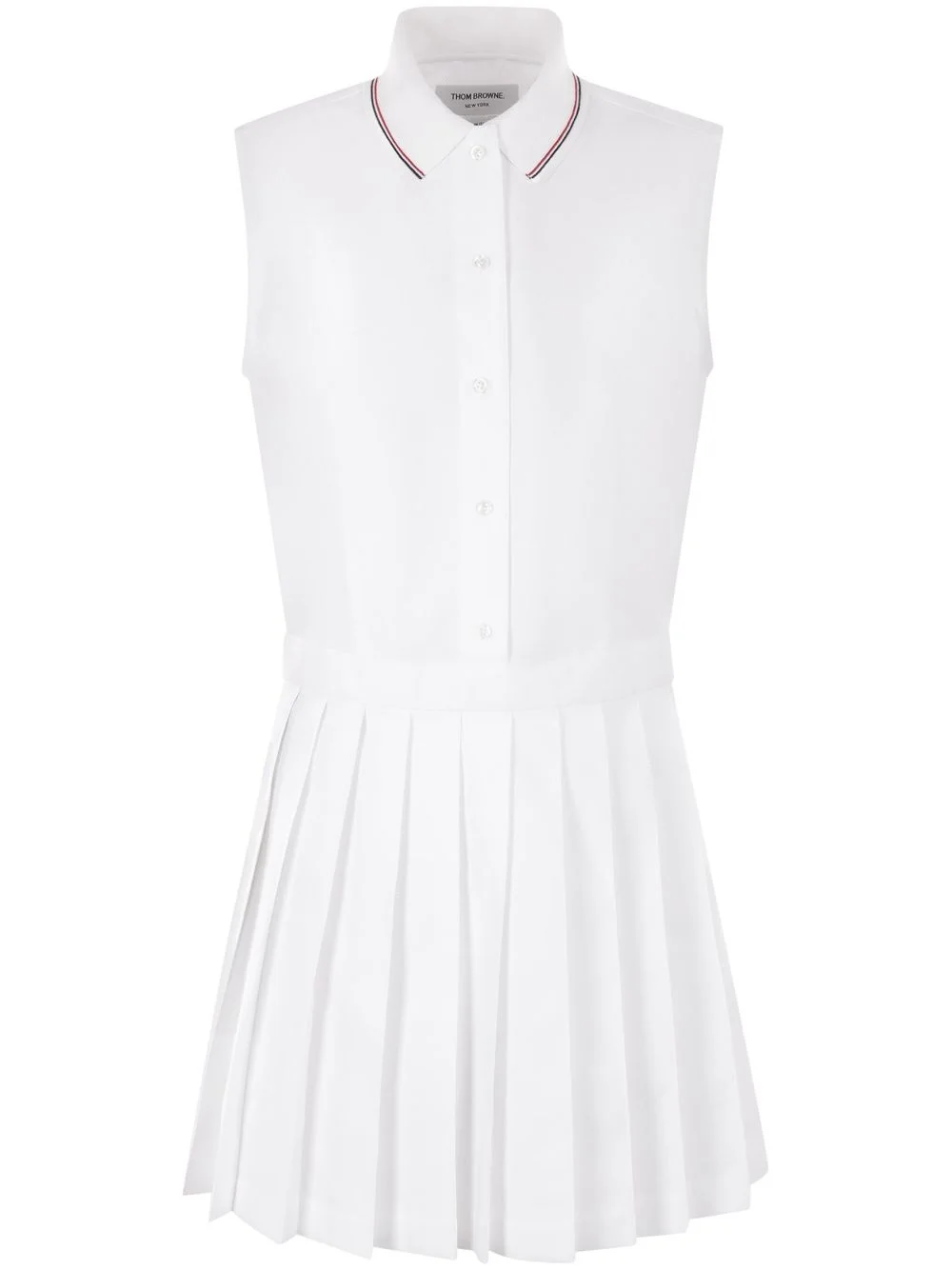 pleated skirt dress Highlights - White - Front button fastening - Polo collar - Sleeveless Made in Italy Composition Cotton 100%