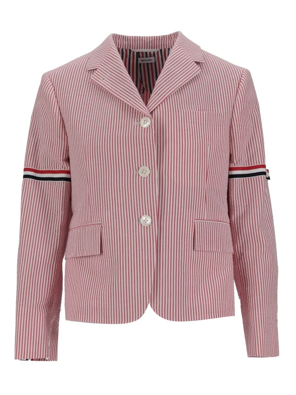 striped-pattern blazer Highlights - Red - Striped pattern - Three-button fastening - Armband detail - Flap pockets - Notched lapels Imported Composition Lining: Cupro 100% Outer: Cotton 100% Washing instructions Read Manufacturer Guidelines
