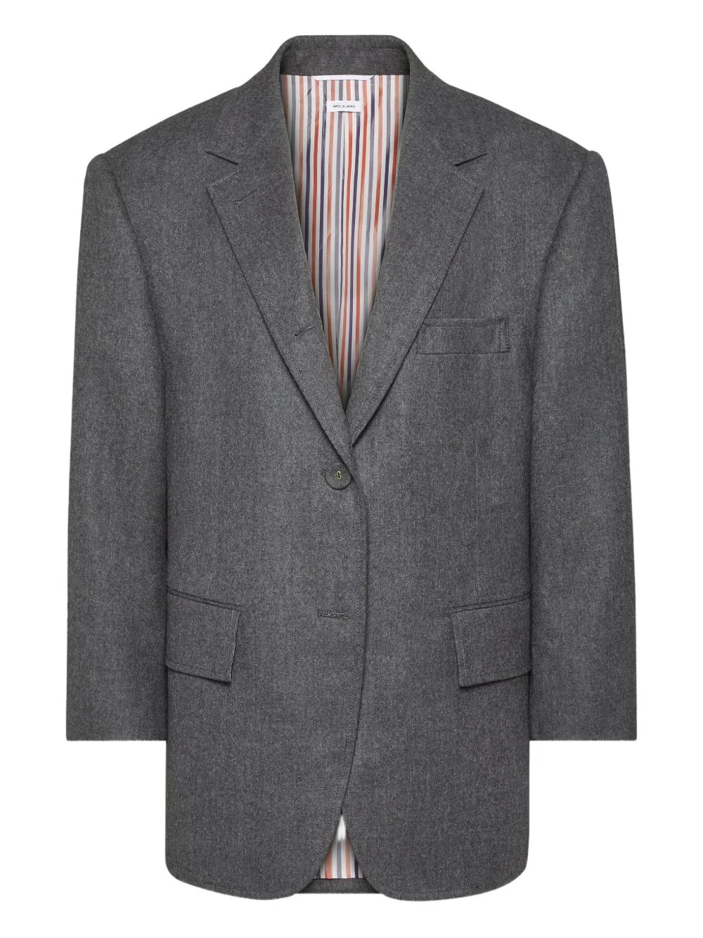 wool flannel blazer Highlights - Grey - Wool - Front button fastening - Flap pockets - Striped lining Made in Italy Composition Wool 100% Washing instructions Read Manufacturer Guidelines