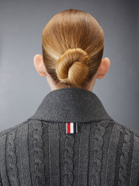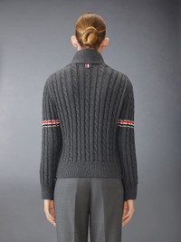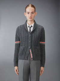 DETAILS & FIT For cool days and nights — our Merino Wool Armband Cardigan. Signature Thom Browne emblems put a twist on sophisticated seasonal wear. Front button closure with striped grosgrain placket Buttoned cuffs with signature striped grosgrain trim Signature striped grosgrain loop tab Model is 5'10" (178 cm), wearing size 40 100% Virgin Wool Made in Ireland FKC621A-Y1024-035