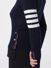 DESCRIPTION - Logo: Back, Thom Browne 4-bar - Neckline: Crewneck - Sleeves: Long - Materials: Cashmere DETAILS AND CARE Composition CASHMERE SIZE AND FIT Sizes not available Size and fit Slim fit Designer code: FKA001A00011 415 Giglio Code: F32895 Designer: Thom Browne Collection: Thom Browne Woman Category: Clothing Thom Browne