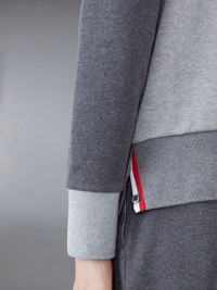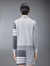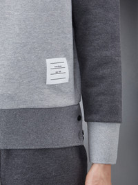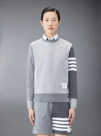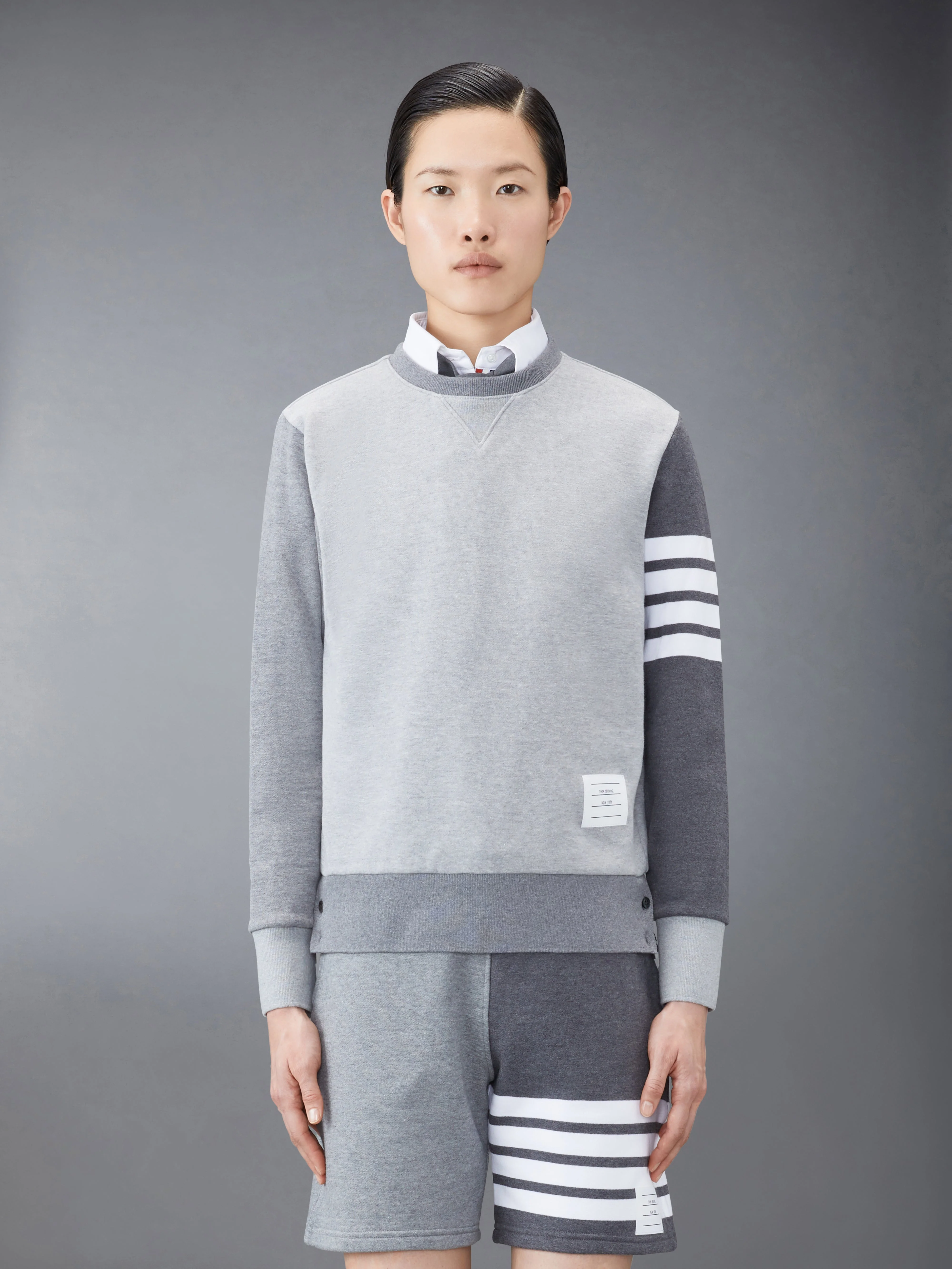 DETAILS & FIT Leisurewear made artful, our Classic Fun-Mix Loopback 4-Bar Sweatshirt. Shades of cotton are woven together in patchwork form amidst two signature Thom Browne emblems — 4-Bar stripes and a nametag applique. Crew neckline with VPatch Engineered 4-bar stripe detail at left sleeve Name tag applique above hem Buttoned side vents with signature striped grosgrain trim Signature striped grosgrain loop tab at back of neck Model is 5' 10" (178cm), wearing size 40 100% Cotton Made in Japan FJT062F-00535-982