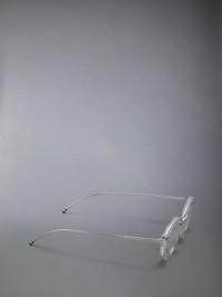 Always true to our American DNA and inspired by mid-century aesthetic, the Thom Browne eyewear collection is ideal for those who appreciate a sleek and sophisticated look. It's designed for individuals who exude confidence and wish to tell a story through their fashion statement. Clear crystal acetate Clear lens Round shape Signature 4-bar Striped enamel temple tips Eco-leather case Lens Width: 46/49mm Nose Bridge Length: 21mm Temple Length: 150mm 50% Acetate, 50% Titanium Made in Japan UEO011A-G0003-000