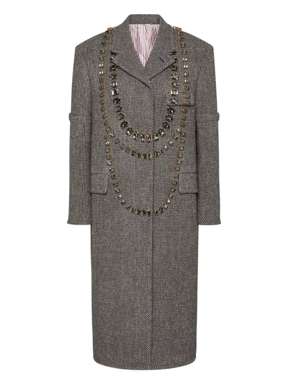 Trompe l'Oeil crystal-embellished checked coat Highlights - Grey and multicolour - Embellishment - Button fastening - Flap pockets Made in Italy Composition Fabric 100% Washing instructions Read Manufacturer Guidelines