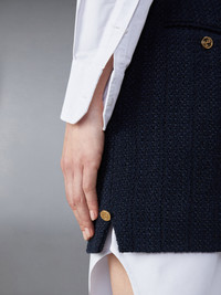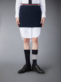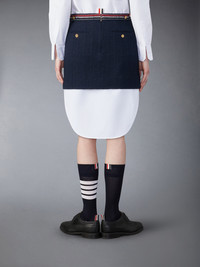 DETAILS & FIT Inspired by East Coast preppy icons, this skirt is a fresh take on a classic silhouette. Pair it with our Classic Tweed Sport Coat. Back zip closure with adjustable button waist Side slip pockets Button-fastening back welt pockets Button side vents Signature striped grosgrain loop tab Model is 5'10" (178 cm), wearing size 40 57% Cotton, 18% Polyester, 12% Polyamide, 8% Wool, 4% Lyocell, 1% Viscose Combo1: 100% Silk Made in Italy FGCA04A-F0721-415