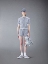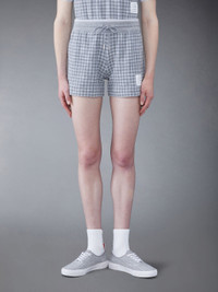 DETAILS & FIT Leisurewear made artful. These comfortable shorts are adorned with signature Thom Browne emblems throughout. Our fine tweed fabric is sourced from a fabric mill founded in 1912 in Carlisle, England. Drawstring waistband with silver tone aglets Slip side pockets Name tag applique above left hem Signature striped grosgrain loop tab Model is 5'10" (178 cm), wearing size 40 91% Cotton, 8% Polyamide, 1% Elastane FJQ107A-J0113-035
