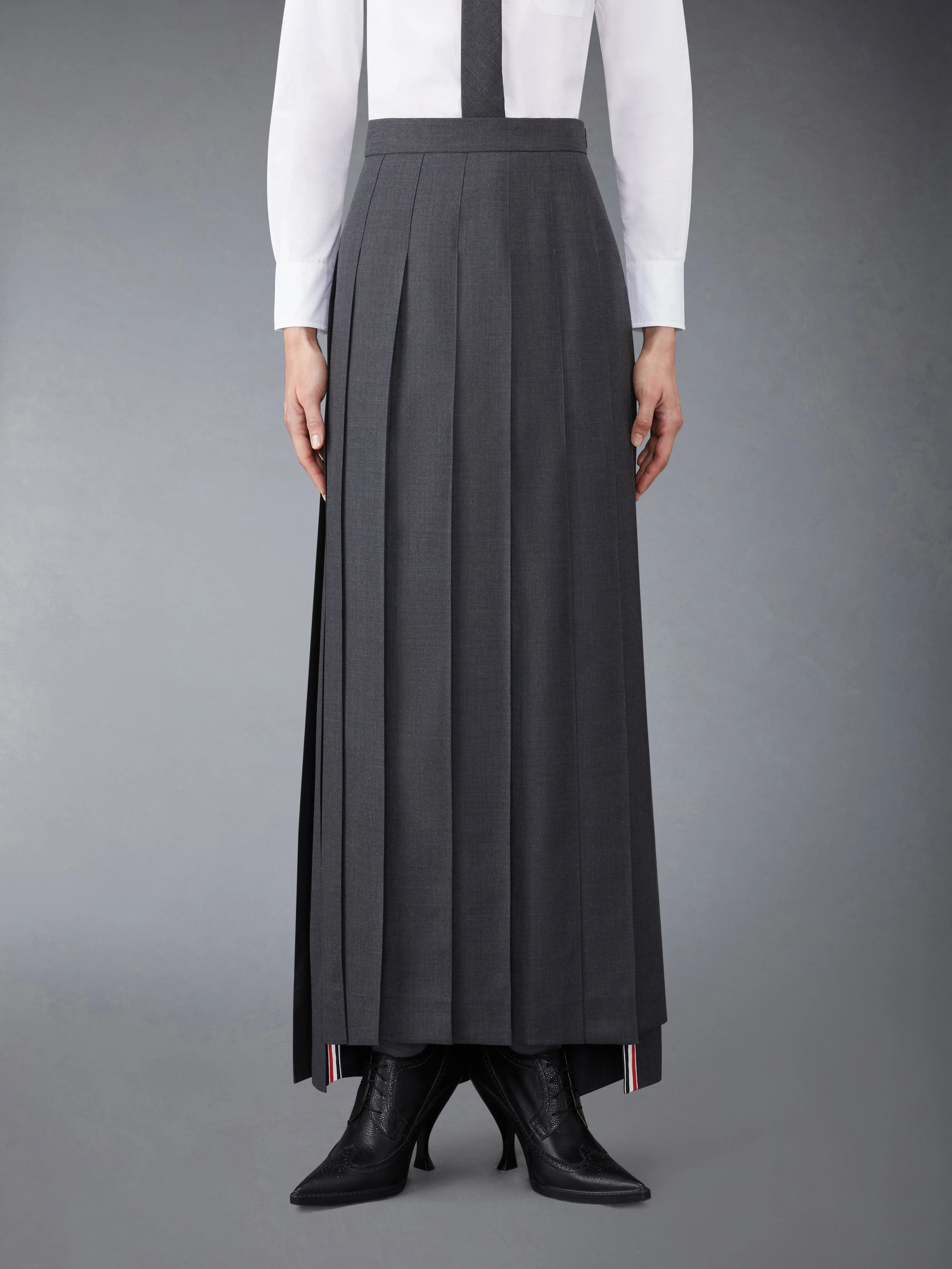 DETAILS & FIT Inspired by East Coast preppy icons, our Twill Pleated Mini Skirt is a fresh take on a classic silhouette. Side zip closure Dropped back hem with signature grosgrain trim Adjustable button backstrap Signature grosgrain loop tab at back waist Model is 5' 10" (178cm), wearing size 40 100% Wool Lining: 100% Cupro Made in Italy FGC698V-00626-025