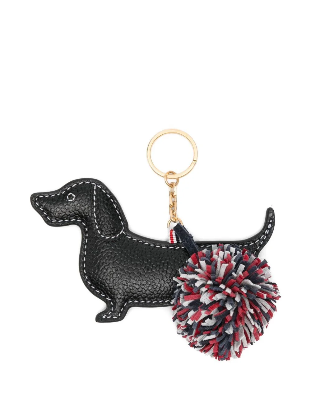 UAM084A00198 001 BLACK Highlights - Puffy hector key ring w/ rwb pom pom in pebble grain leather Imported Composition Calf Leather 100%