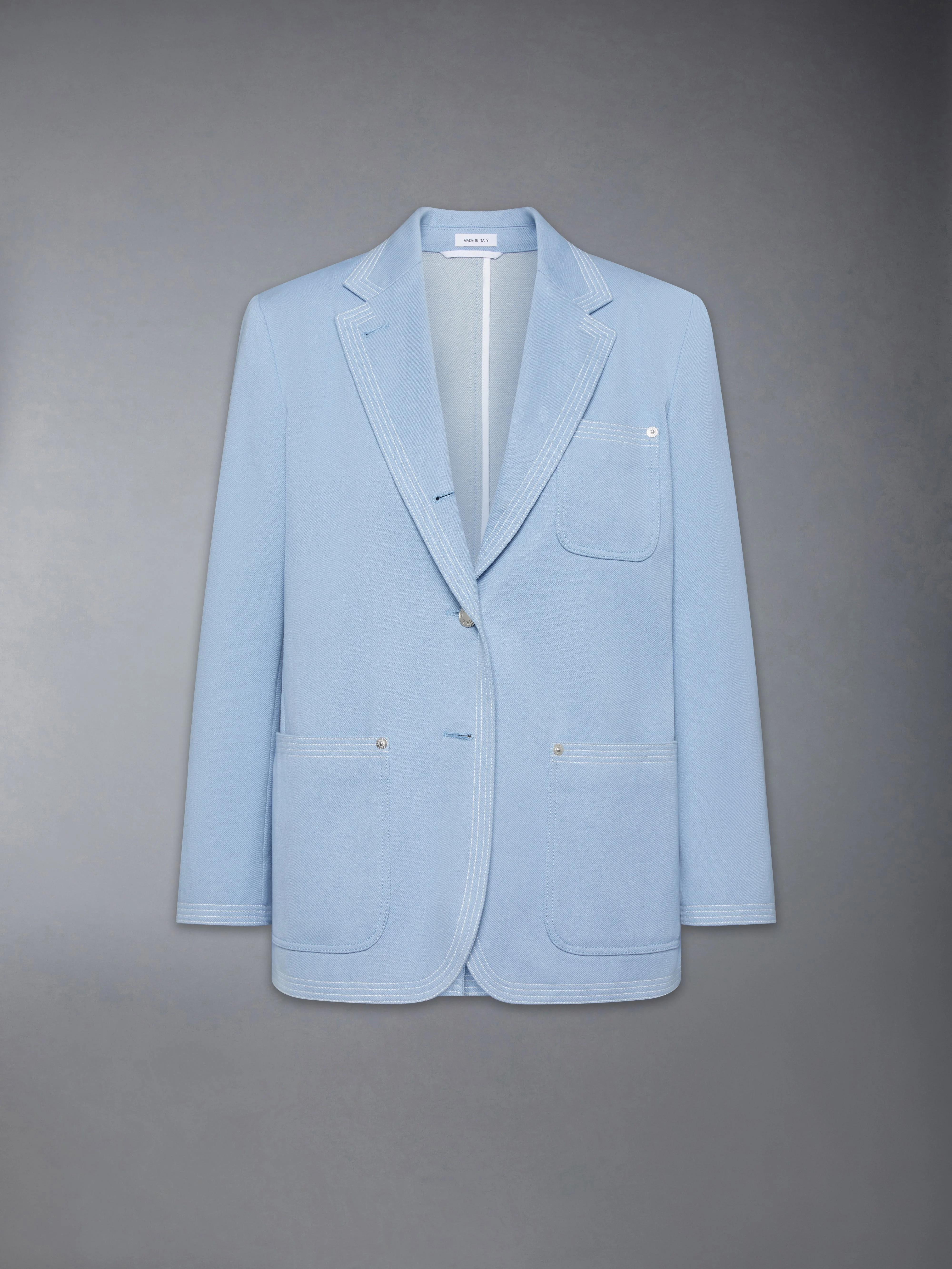 A cross between a classic denim jacket and refined suiting, this relaxed sport coat is inspired by country life charm. Layer it over any of our signature dress shirts. Front button closure 3 Front patch pockets Buttoned cuffs with signature striped grosgrain trim Signature striped grosgrain loop tab Fit 2 Model is 5'10" (178 cm), wearing size 40 100% Cotton Lining: 100% Cupro Made in Italy FBC638U-F0950-480