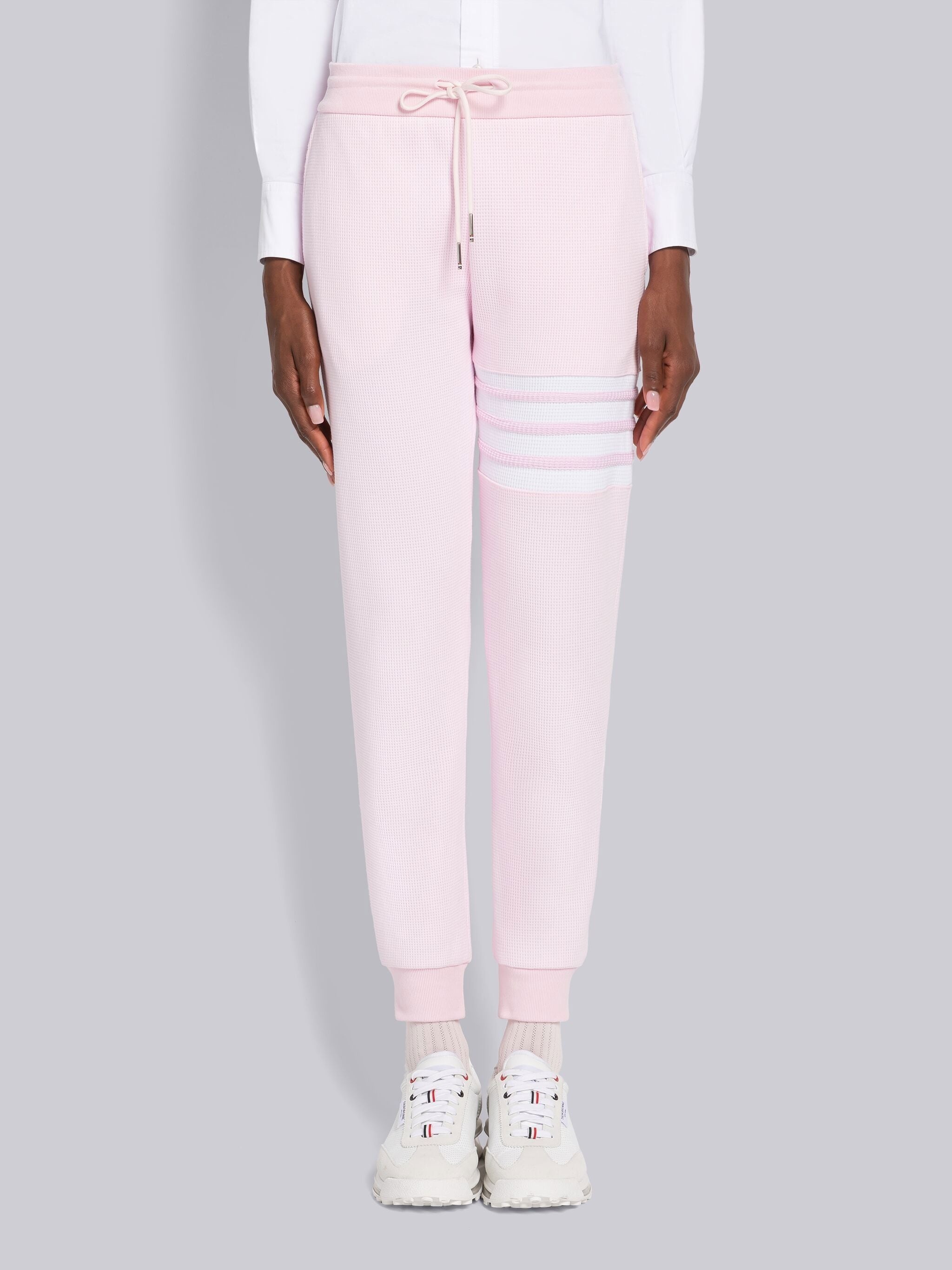 DETAILS & FIT Sweatpants in light pink waffle with 4-bar stripe detail at left thigh in white. Drawstring waistband with enameled silver tone aglets. Rib cuffs. Signature striped grosgrain loop tab at back waist. Model is 5'10" (178 cm), wearing size 40 Made in Italy 100% Cotton FJQ035A06452680