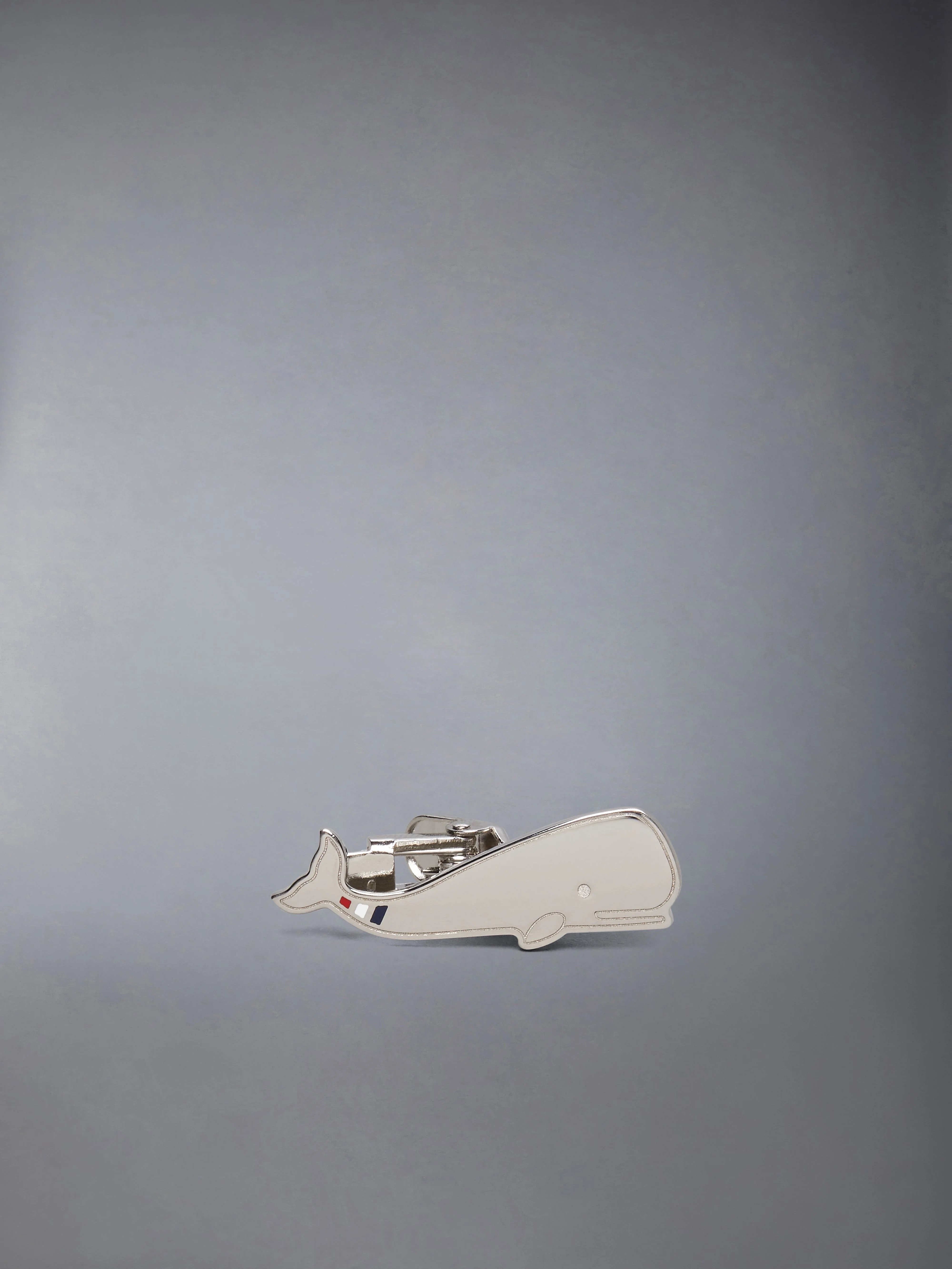 The finishing touch to a Thom Browne suit — our Sterling Silver Whale Tie Bar. The whale motif is a nod to coastal getaways and aquatic adventures. Hinged clip Pebble grain leather box 100% Sterling Silver Made in Italy UAK011A-00002-045