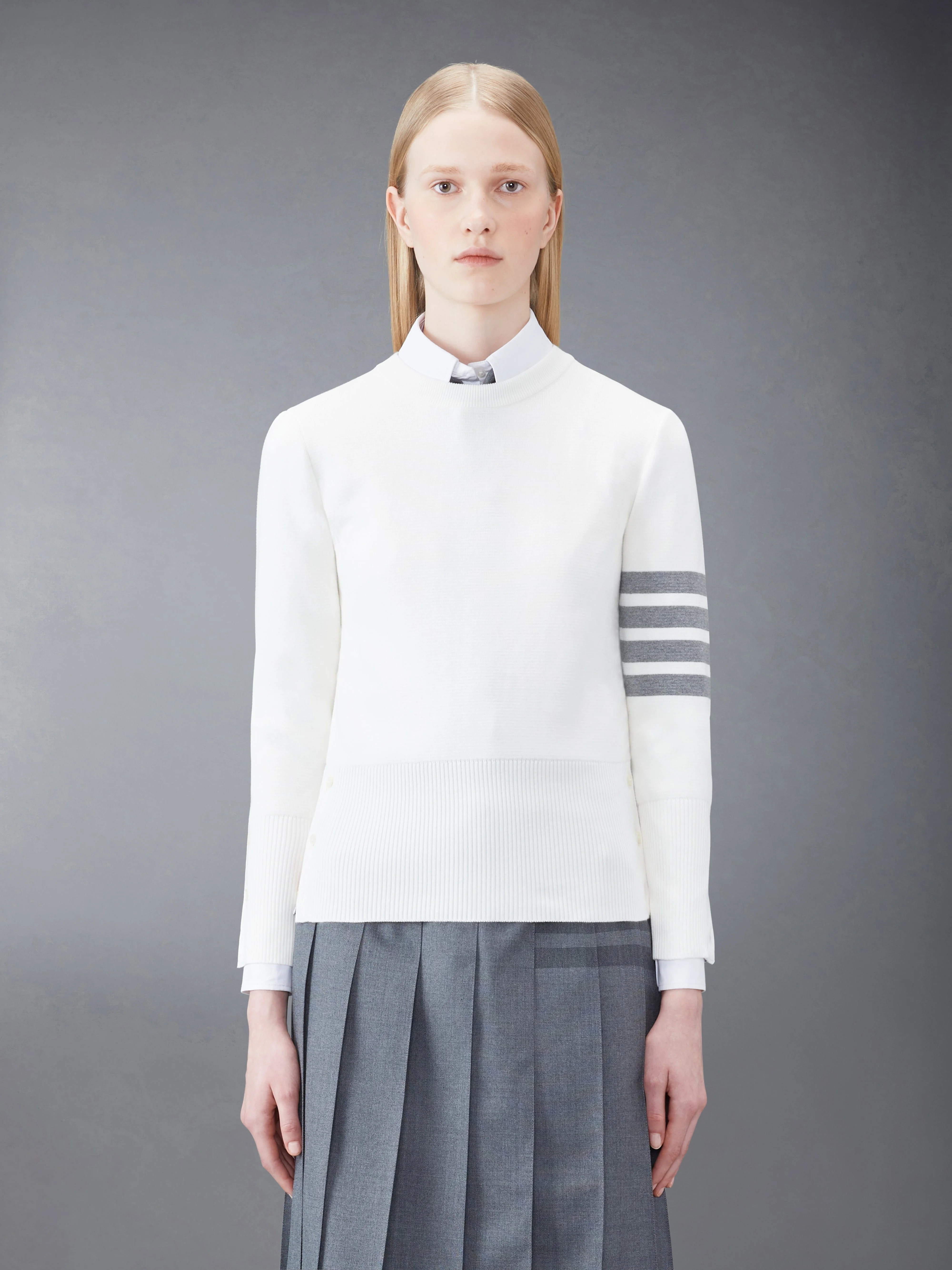 White Pullover Cotton Crepe Milano Stitch Crewneck Collar Engineered 4-Bar Stripe Side RWB Button Vents RWB Cuff Vents Signature Grosgrain Loop Tab Model is 5'10"; (178 cm), wearing size 40 FKA239A-00219-100