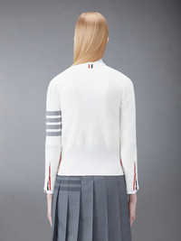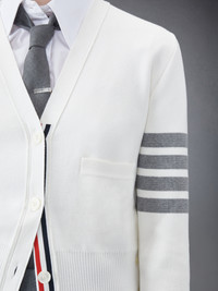 White Cotton Crepe V-Neck 4-Bar Cardigan