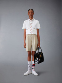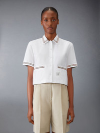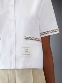 DETAILS & FIT This luxurious shirt captures attention with its striking white base and bold tricolor braided trim. Pair it with any of our signature trousers or dress shorts. Front button closure 2 Front slip pockets Name tag applique Signature striped grosgrain loop tab Model is 5'10" (178 cm), wearing size 40 100% Cotton Made in Italy FLL191B-F0313-100