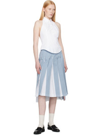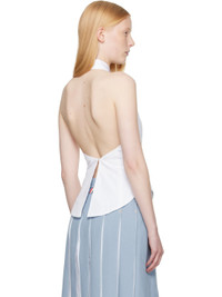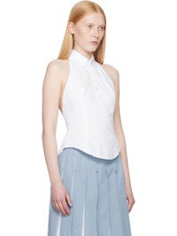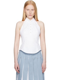 Cotton poplin top. · Button-down spread collar · Fixed halter strap · Five-button placket · Curved hem · Tricolor grosgrain flag at back collar · Button fastening at open back · Central vent at back hem Supplier color: White 100% cotton. Made in Italy 252381F111001