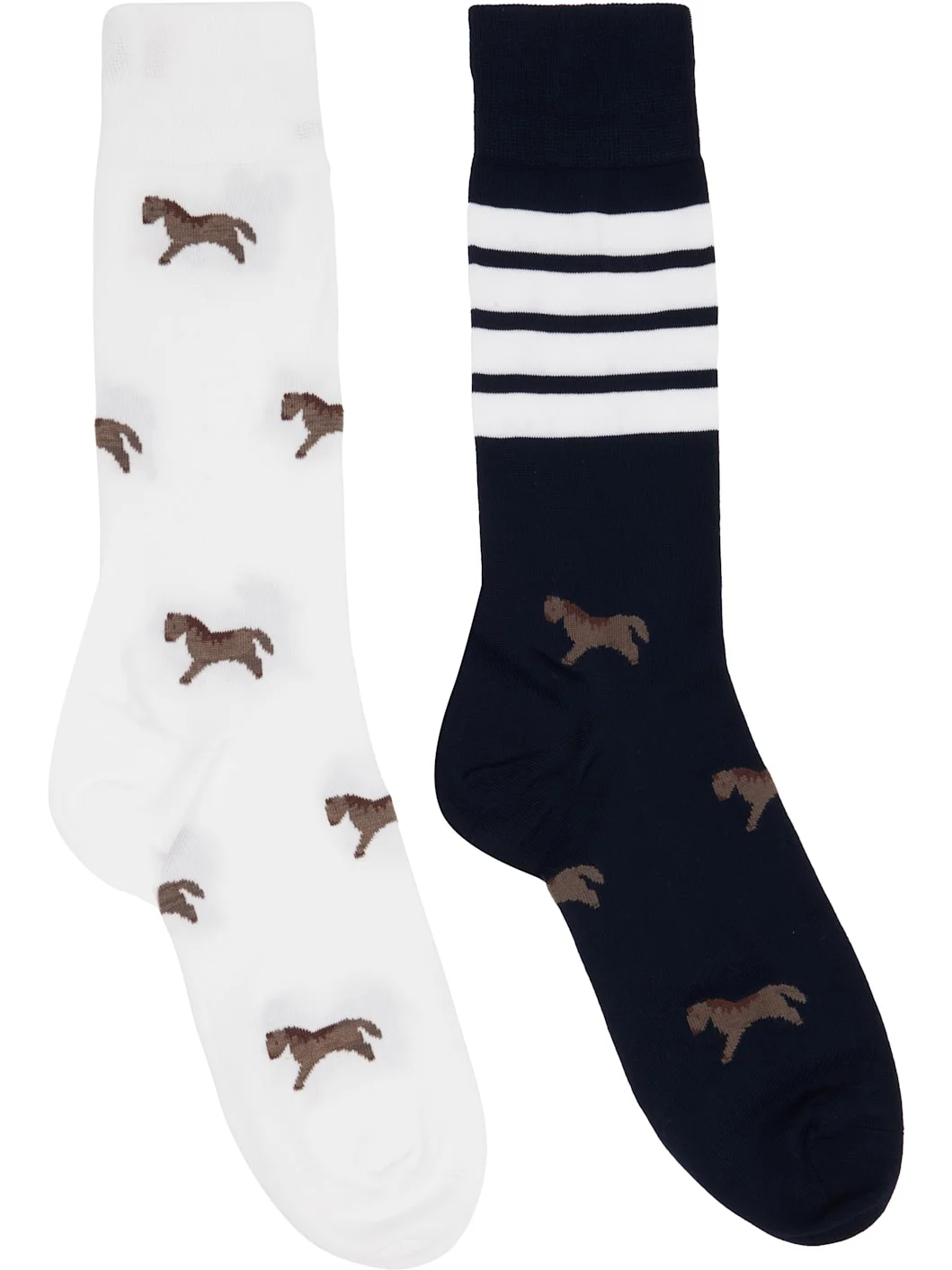 Pair of calf-high cotton-blend jersey socks. · Jacquard graphic pattern throughout · Tricolor grosgrain flag at rib-knit cuffs · Stripes at cuff Supplier color: Navy/White 75% cotton, 25% polyamide. Made in United Kingdom 261381F076000