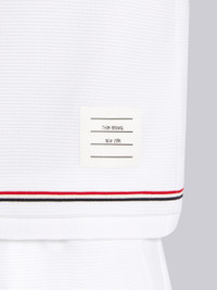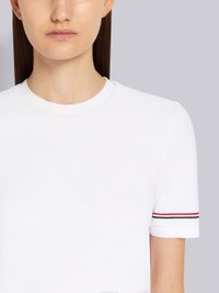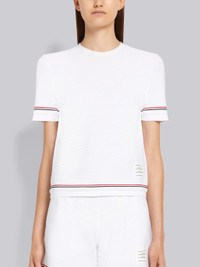 DETAILS & FIT Short sleeve sweatshirt in white ottoman rib with stripe details at cuffs and hem. Crew neckline. Ribbed cuffs and hem. Name tag applique above hem. Signature striped grosgrain loop tab at back of neck. Model is 5'10" (178 cm), wearing size 40 100% Cotton Made in Italy FJS118A08025100