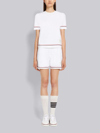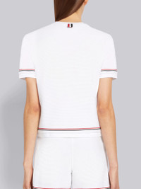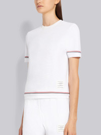White Ottoman Rib Stripe Hem Short Sleeve Sweatshirt