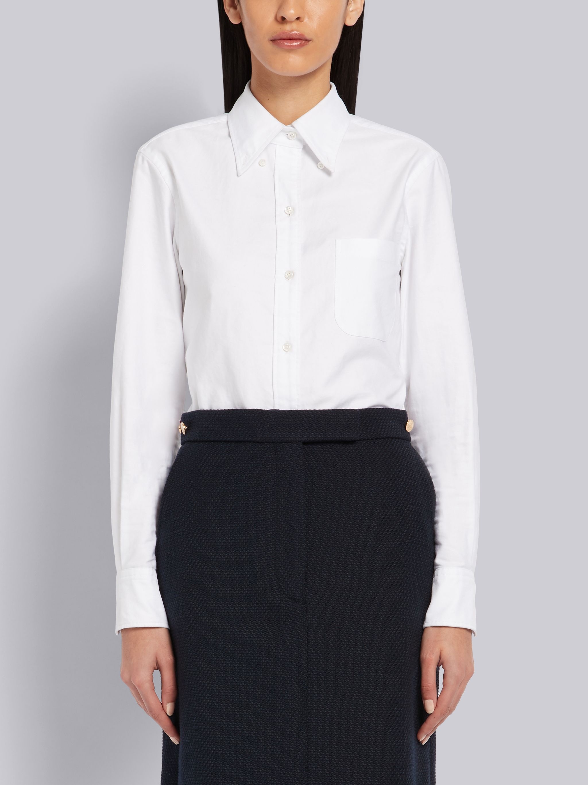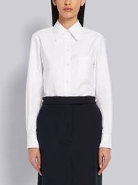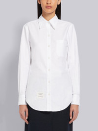 DETAILS & FIT White Classic Oxford Shirt Button-Down Barrel Cuff Point Collar Long Sleeve Single Chest Pocket Thom Browne 4-Bar Tag Center-Back Locker Loop Signature Grosgrain Loop Tab Model is 5'10" (178 cm), wearing size 40. NOTES 100% Cotton Made in Italy FLL005G00139100