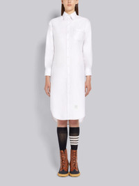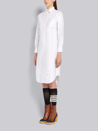White Oxford Triple Stitching Point Collar Knee Length Shirtdress
