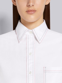 DETAILS & FIT Knee length shirtdress in white Oxford with allover multicolor triple-stitched detailing. Button front closure, point collar, patch chest pocket. Buttoned cuffs. name tag applique above shirttail hem. Seamed back yoke with locker loop. Signature striped grosgrain loop tab at back of neck. Model is 5'10" (178 cm), wearing size 40 100% Cotton Made in Italy FDS001I06177100