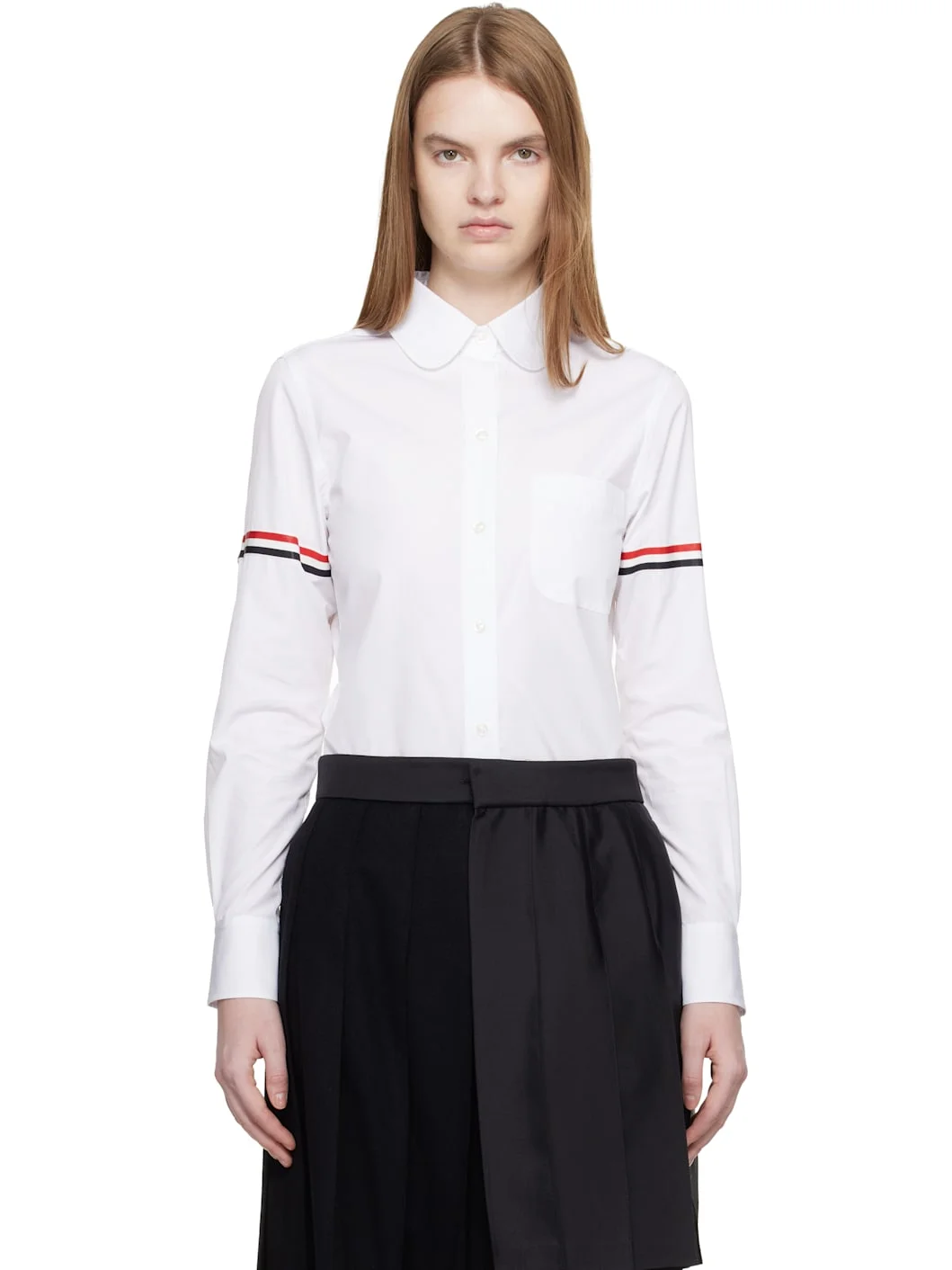 White Poplin Armbands Classic Round Collar Shirt