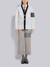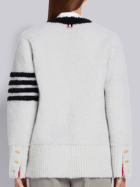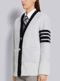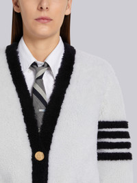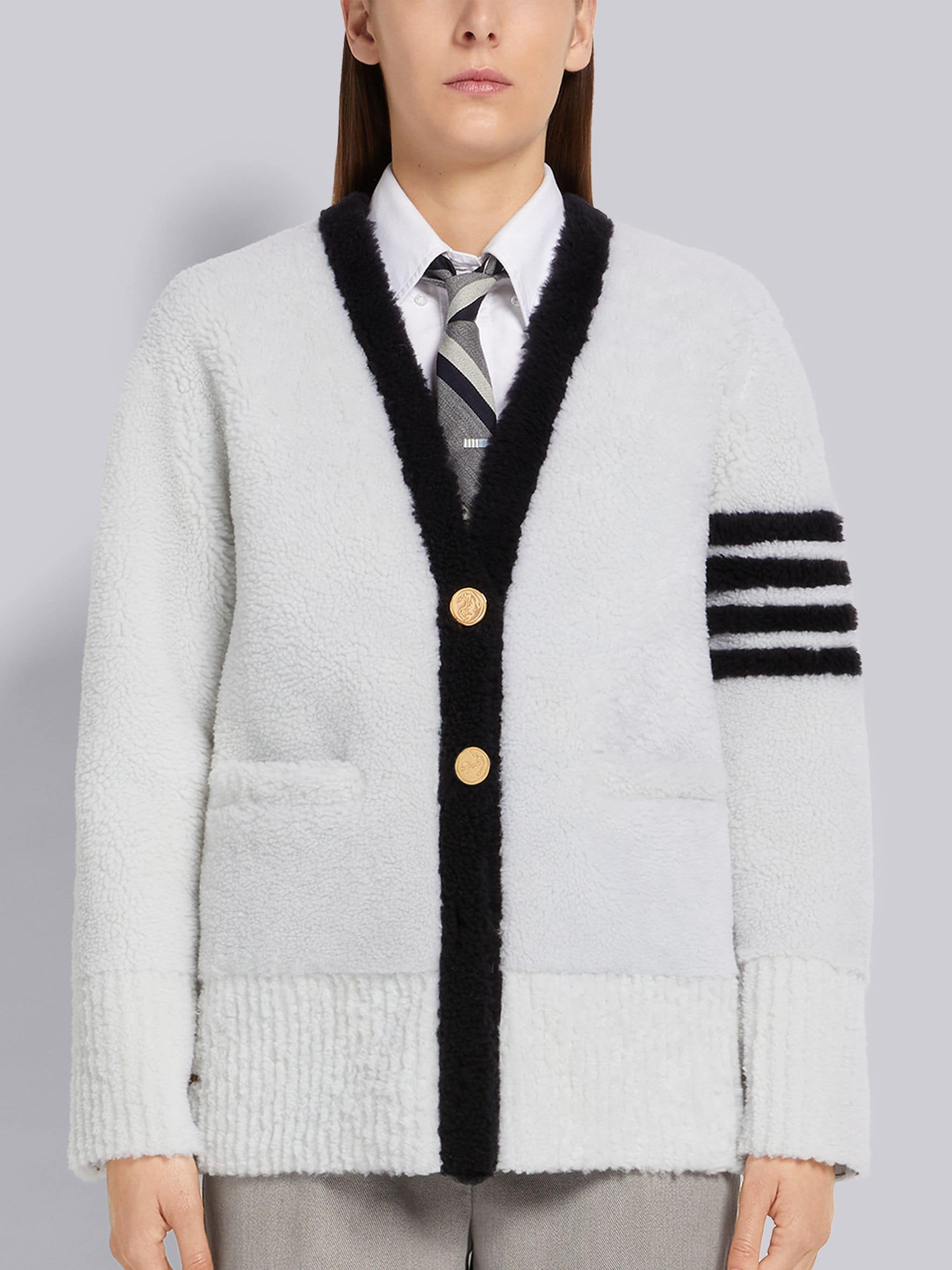 White Shearling Contrast 4-Bar V-Neck Cardigan Jacket