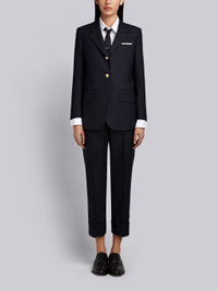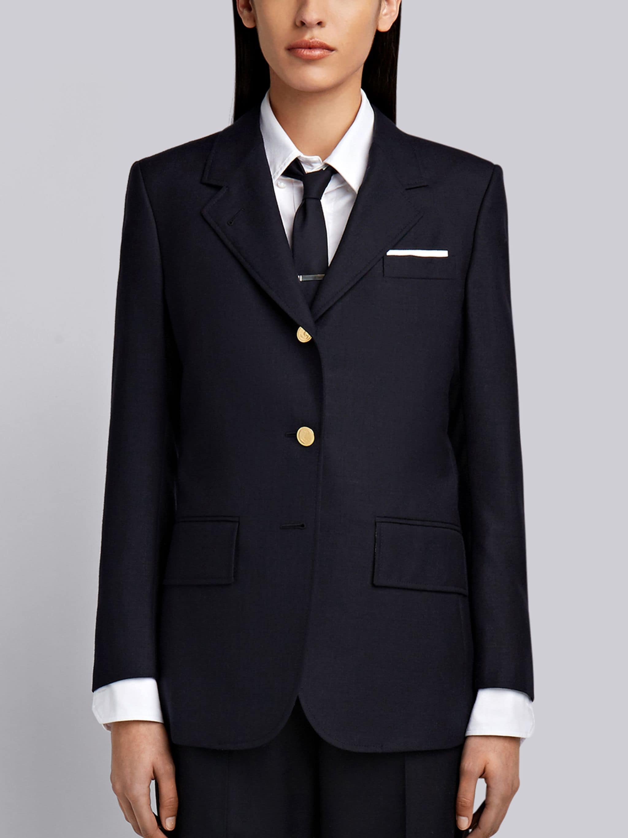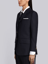 DETAILS & FIT Wide lapel sport coat in navy 2-ply wool fresco. 3-button front closure, notched lapels. Flap front pockets, single chest pocket. Double vented back hem. Signature striped lining with name tag at interior pocket. Signature striped grosgrain loop tab at back of neck. Wide Lapel - Fit 4. / Model is 5'10" (178 cm), wearing size 40 / 100% Wool Made in Italy FBC357A00473415 NOTES 100% Wool Made in Italy FBC357A00473415